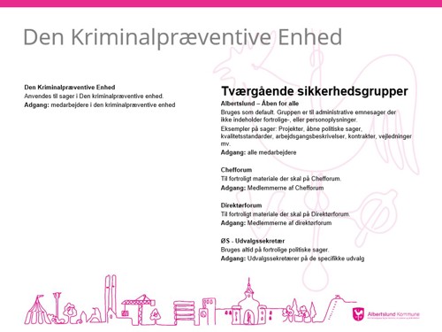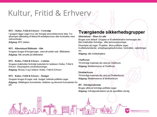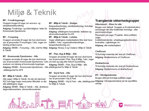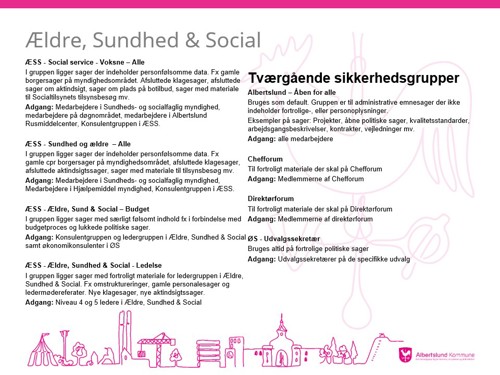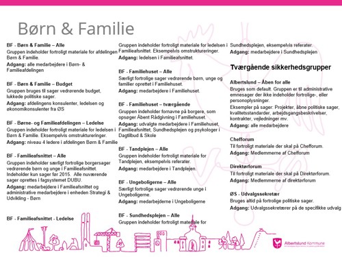 Den samlede oversigt over de nye sikkerhedsgrupper er under udarbejdelse. Nedenfor kan du se din afdelings sikkerhedsgrupper