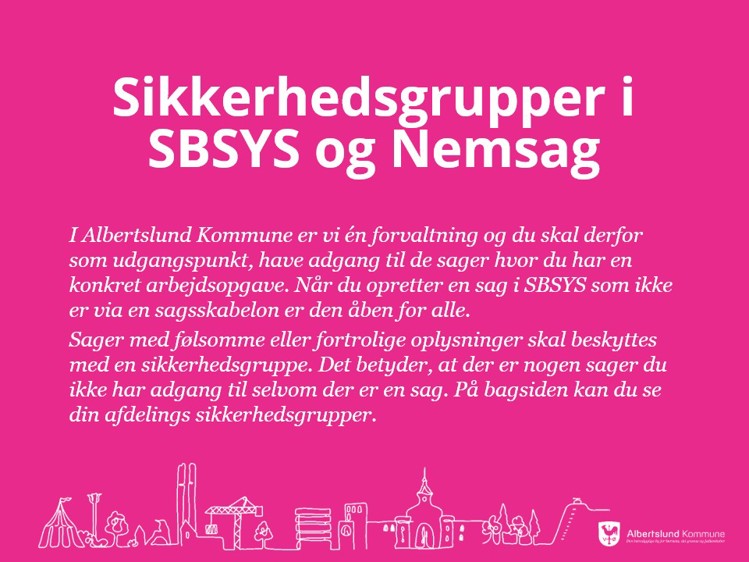 I Albertslund Kommune har vi brugt SBSYS siden februar 2016. I SBSYS registrerer vi de sager og dokumenter som vi ikke registrerer i et fagsystem.
